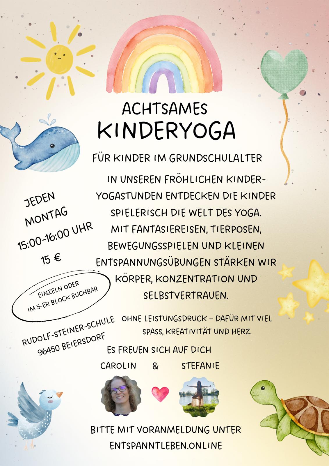 Mit spielerischen Yogaübungen, Fantasiereisen, Atemübungen und Entspannungsmomenten lernen die Kinder
