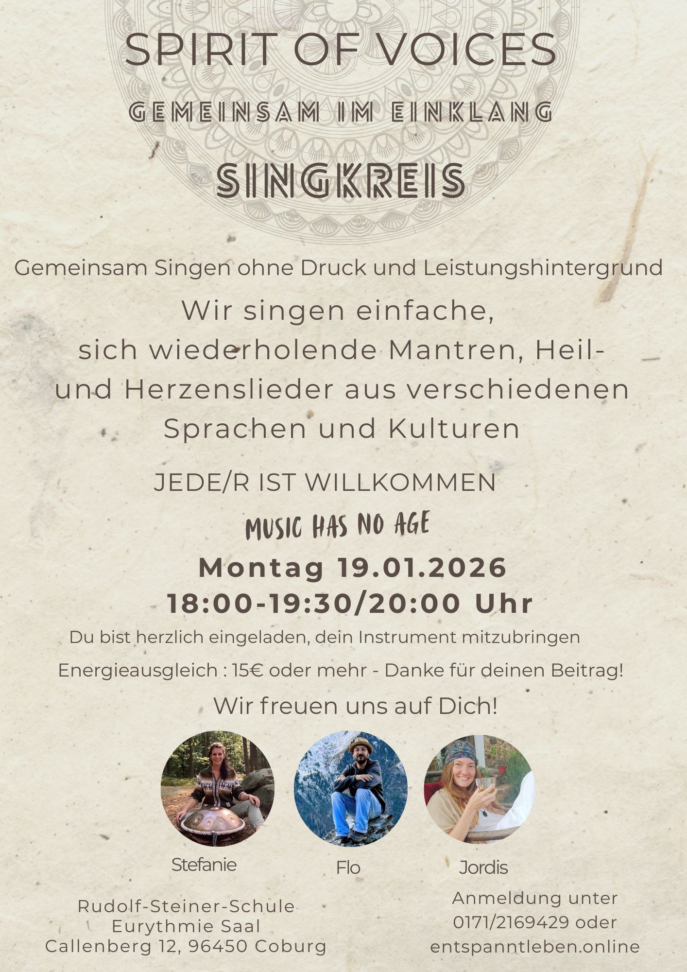 Wir singen gemeinsam einfache, sich wiederholende Mantras, Friedens-, Heil- und Herzenslieder aus verschiedenen Kulturen und Sprachen, die Herz und Seele berühren.